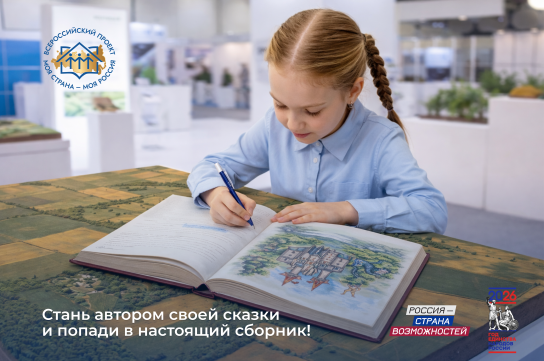 Каждый год по итогам конкурса «Моя страна – моя Россия» Президентской платформы «Россия – страна возможностей» выпускаются сборники, в которые входят 100 лучших работ участников со всей страны. Это живые истории детей – о семье, традициях, героях, науке и родной культуре. В рамках специальной номинации «Сказки народов моей страны», приуроченной к Году единства народов России, у детей есть возможность вновь стать авторами сборника.