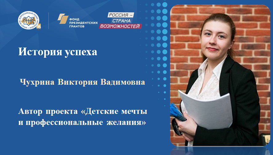 История успеха от Чухриной Виктории Вадимовны – автора проекта «Детские мечты и профессиональные желания»