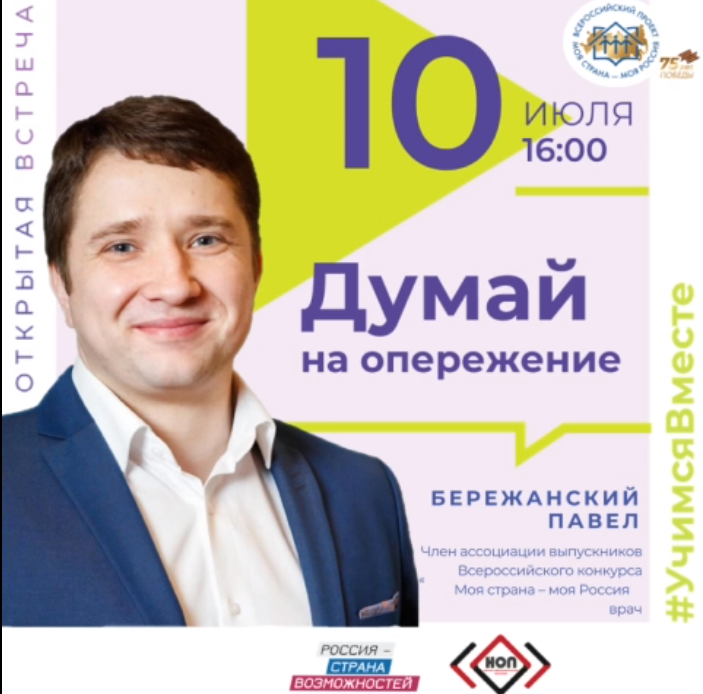 10 июля в 16:00 встретимся с Павлом Бережанским, кандидатом медицинских наук, победителем XVI и XVII сезонов Всероссийского конкурса «Моя страна – моя Россия».