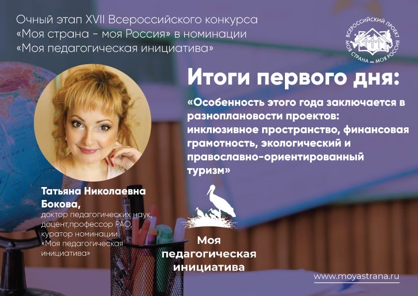 «Номинация «Моя педагогическая инициатива» позволяет продемонстрировать педагогические таланты, фундаментальные и прикладные исследования участников со всех уголков России. Особенность этого года в разноплановости проектов: инклюзивное пространство, финансовая грамотность, экологический и православно-ориентированный туризм.