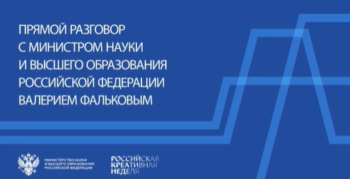 Сегодня, 12 сентября, в 13:30 состоится встреча Министра науки и высшего образования Российской Федерации Валерия Фалькова с участниками Российской креативной недели. На протяжении часа Министр будет комментировать темы, которые волнуют креативную молодежь России.