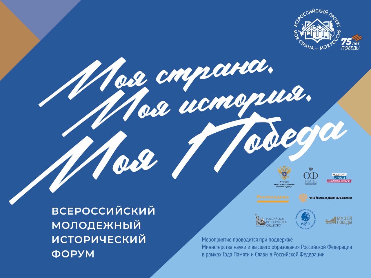 * Всероссийский молодежный исторический форум «Моя страна. Моя история. Моя Победа» проходит при поддержке Министерства науки и высшего образования Российской Федерации в рамках Года Памяти и Славы в России.