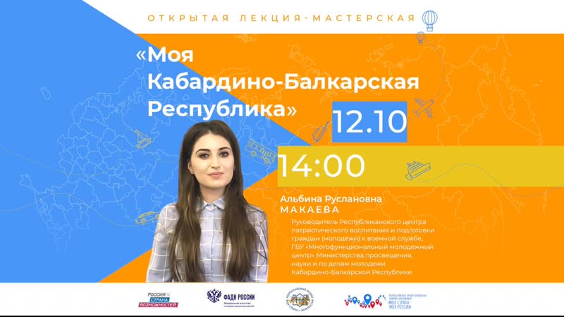 Онлайн-занятие проведёт руководитель Республиканского центра патриотического воспитания и подготовки граждан (молодёжи) к военной службе,ГБУ «Многофункциональный молодежный центр» Министерства просвещения, науки и по делам молодежи Кабардино-Балкарской Республики, эксперт Всероссийского конкурса «Моя страна – моя Россия» Альбина Макаева.