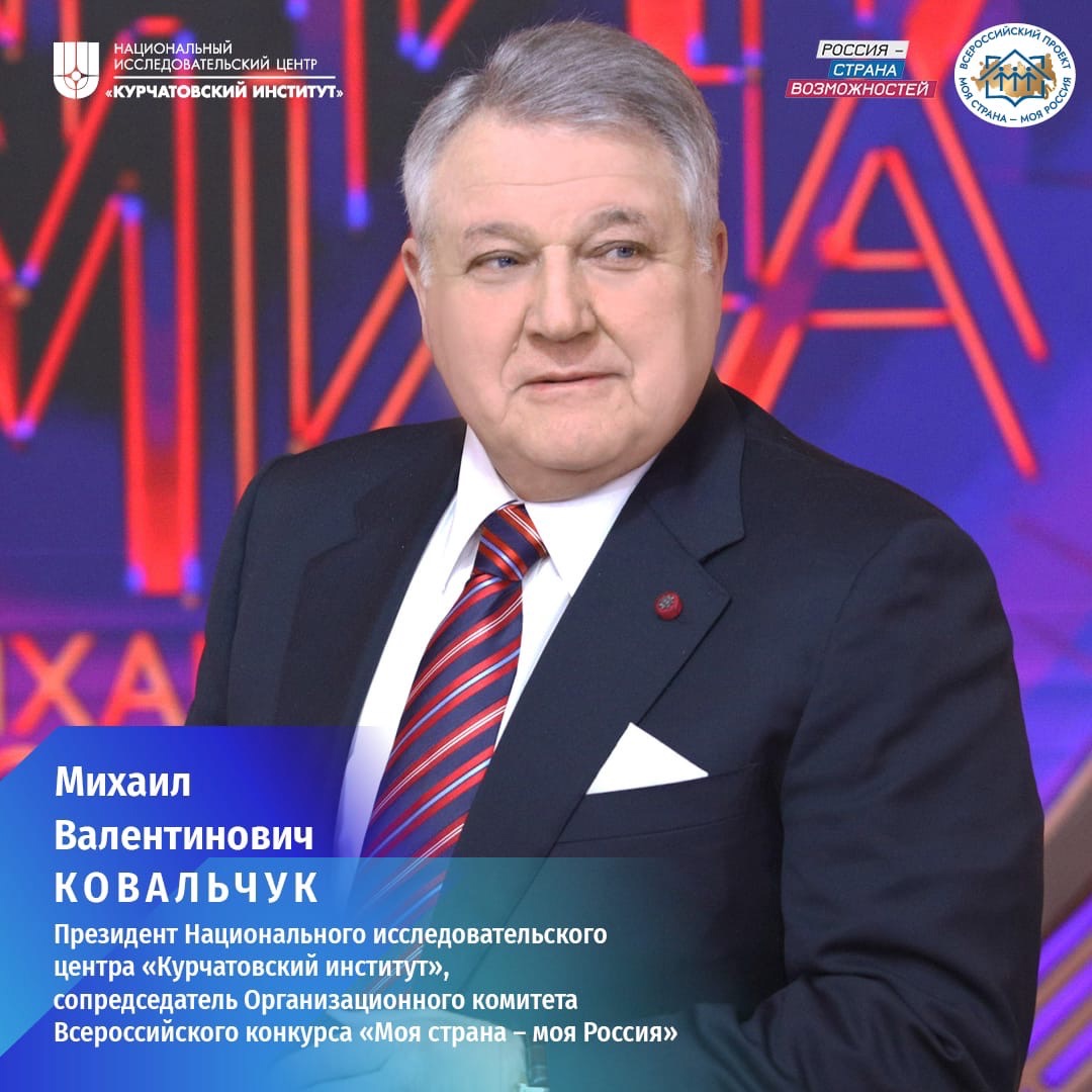 Приветствие Президента Национального исследовательского центра «Курчатовский институт», сопредседателя Организационного комитета Всероссийского конкурса «Моя страна - моя Россия» Михаила Валентиновича Ковальчука