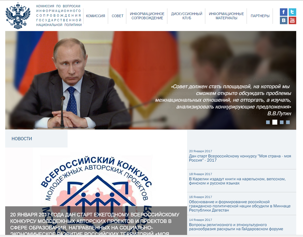 Комиссия по вопросам информационного сопровождения государственной национальной политики Совета при Президенте РФ по межнациональным отношениям опубликовала новость о старте Конкурса