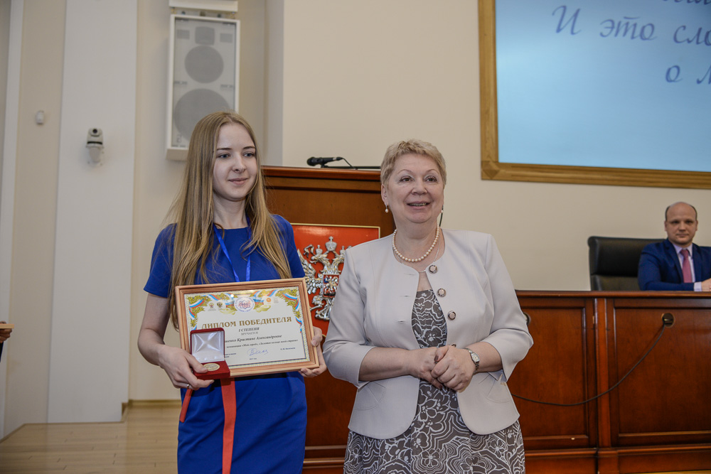 Министр образования и науки РФ Ольга Юрьевна Васильева вручила памятные медали и дипломы победителям ежегодного всероссийского конкурса "Моя страна — моя Россия", который проводится с 2003 года в целях привлечения молодежи к участию в развитии российских регионов, городов и сёл.